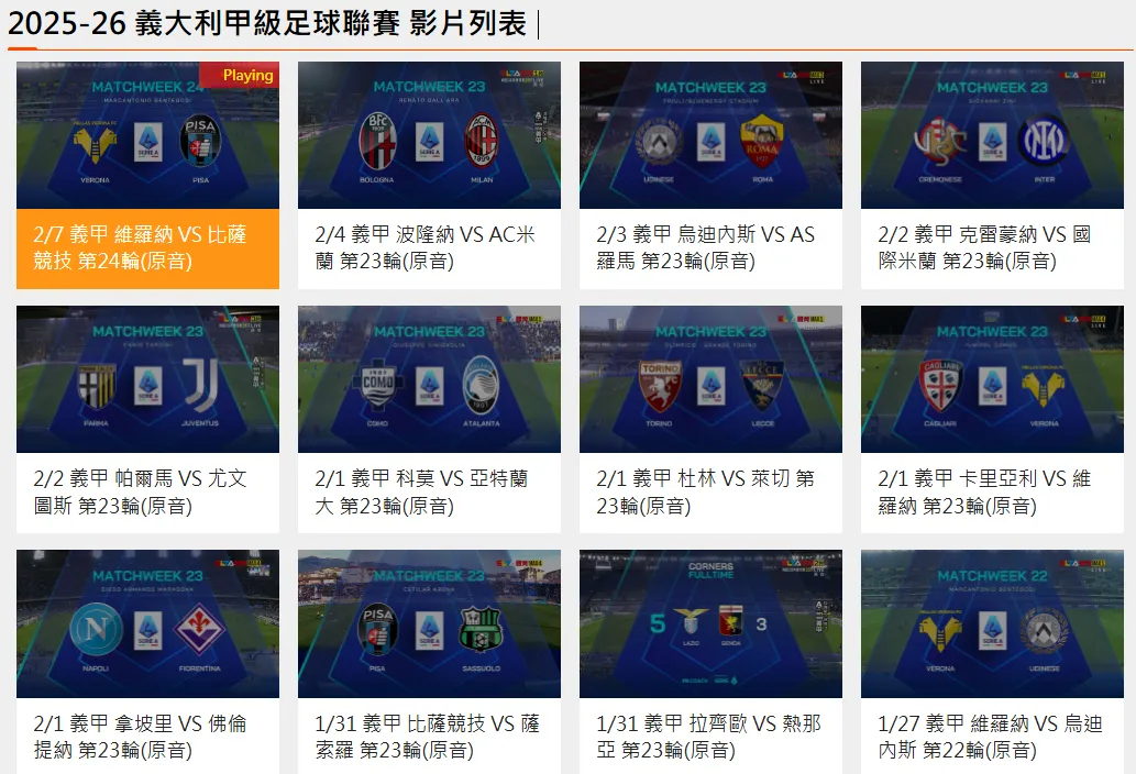 - 开通成功后,返回意甲专题页,所有场次均可直接观看,无需额外付费